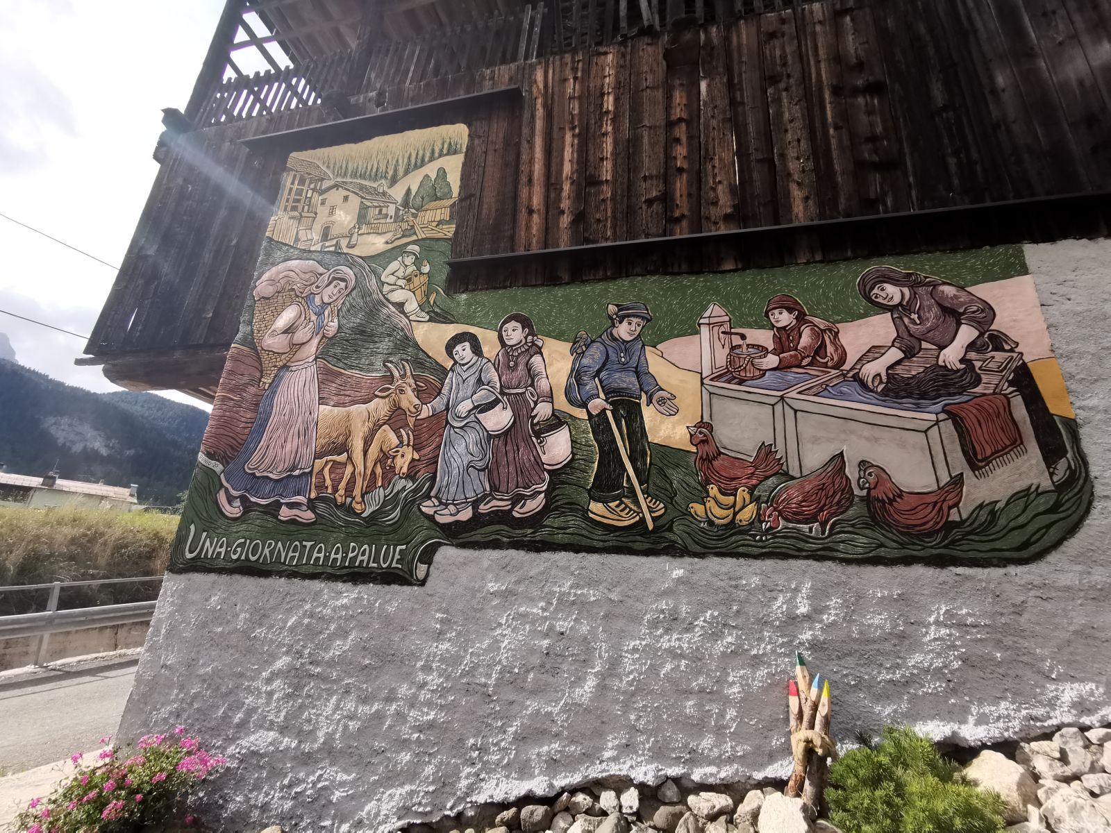 L’arte del Maestro, antiche foto di Palue e dei suoi abitanti da cui prendere spunto e la fantasia nel ricreare la giornata di un tempo: questi sono gli ingredienti dell’opera d’arte dal titolo, non a caso, “Una giornata a Palue”.